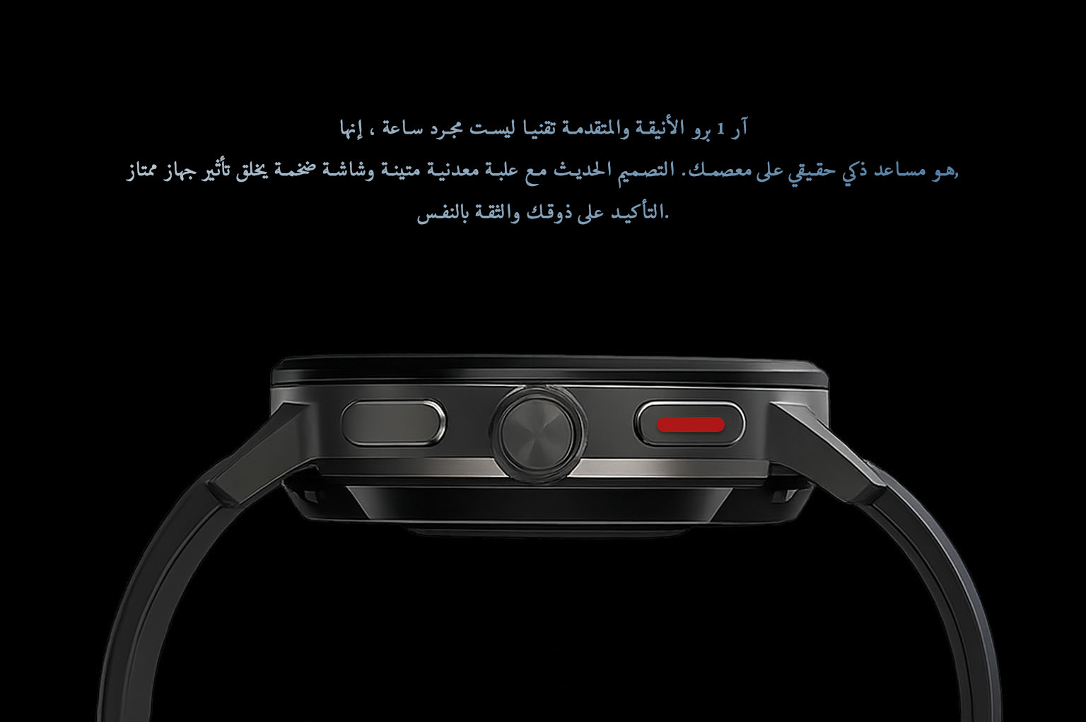 طراز ساعة آر 1 برو هو مثال للأناقة الصارمة والأسلوب المقتضب. حالة جولة الكلاسيكية مع حافة معدنية قوية والانتهاء من ماتي يعطي ووتش نظرة متميزة ومتينة.