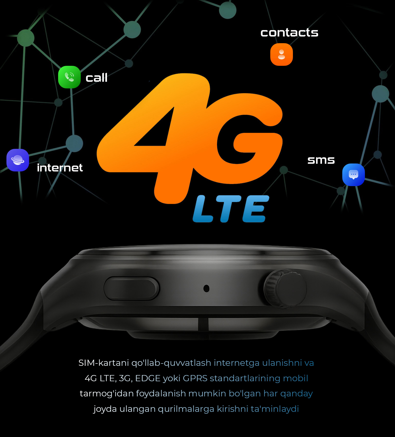 | Aloqa | Nano SIM 4G, Wi-Fi, Bluetooth 4.2 va aniq joylashuvni kuzatish uchun o‘rnatilgan GPS |